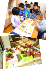 このお店屋さんごっこ-ごっこ遊び-に欠かせないのが“会話”ですね。おすしやさんに年少組がやってきました。「どれにしますか~?」と勢いよく言われ圧倒された年少組さんは「・・・」(そっかぁ…メニューがわからなかったかぁ…)と年長組は考え「いくらとたまごとまぐろと…」とメニューを紹介してみます。ところがそれでも「・・・」(あれれ?難しかったかなぁ…)と更にまた考えます。そして…「じゃあ、全部お皿にのっけてくるから、食べてみて」と伝えます。すると「うん」とうなずく年少さん。お店屋さんもホッとして、お皿に“全部のせ”をしてあげていました。賑やかな雰囲気に圧倒されていた年少組。でも年長さんに親切にしてもらいながら、何やってるんだろう?おもしろそう!と興味がどんどん広がり“やってみる!”経験をたくさんした一日でした。