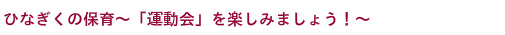 今年度も、「子ども達のための運動会」を目指して保育を進めてまいります。当日もこの「子ども中心」という考え方は変わりません。子どもには「見ること」もとても大切な経験なので、プログラムとプログラムの間、大人の方たちに待って頂くなど、その他にもご協力頂くことが多くなると思います。主旨をご理解の上、よろしくお願いいたします。