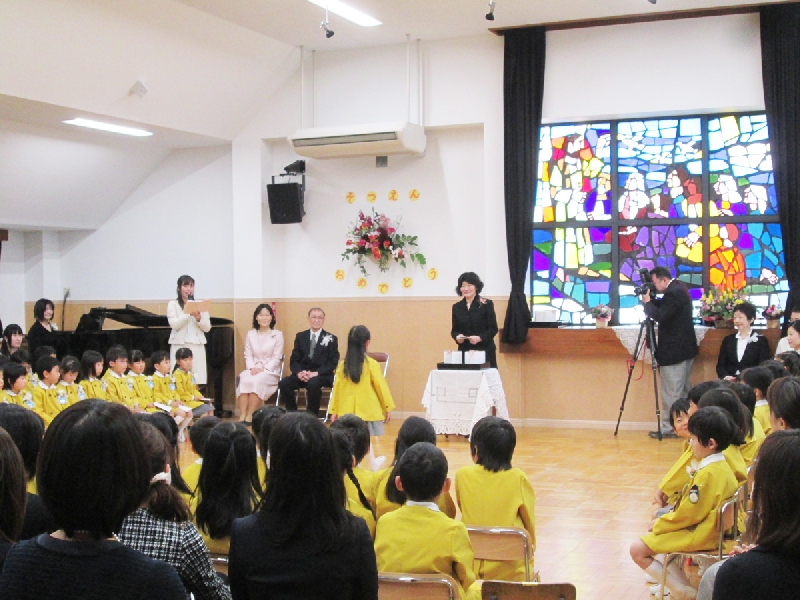 午前中降っていた雨も止み、子ども達の成長を喜ぶかのように明るい陽射しが降り注ぎました。『信仰・希望・愛』神さまが教えて下さった大切なものを胸に小学校へ向けての旅立ちです。